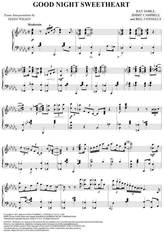 Digital Sheet Music for Good Night Sweetheart by Teddy Wilson, Ray Noble, Reg Connelly, Jimmy Campbell scored for Piano Solo; id:315913