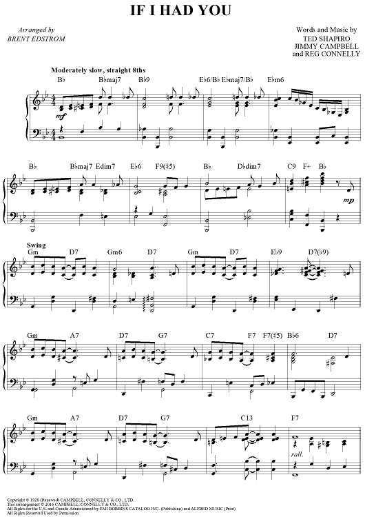 Digital Sheet Music for If I Had You by Reg Connelly, Ted Shapiro, Jimmy Campbell, Brent Edstrom scored for Piano Solo; id:463626