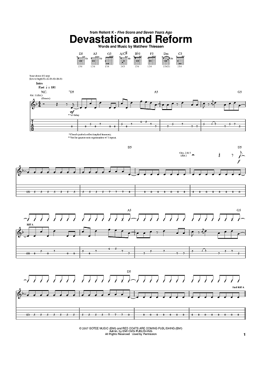 Digital Sheet Music for Devastation And Reform by Relient K, Matt Thiessen scored for Guitar Tab; id:397516
