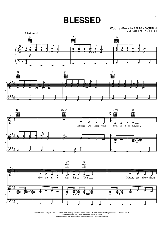 Digital Sheet Music for Blessed by Darlene Zschech, Reuben Morgan scored for Piano/Vocal/Chords; id:379216