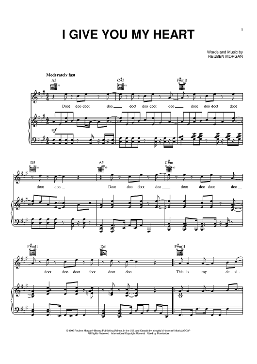 Digital Sheet Music for I Give You My Heart by Jeff Deyo, Reuben Morgan scored for Piano/Vocal/Chords; id:371677