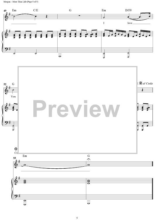 Digital Sheet Music for More Than Life by Reuben Morgan scored for Piano/Vocal/Chords; id:314623