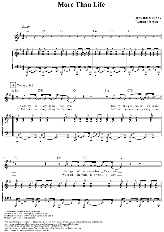 "More Than Life" Sheet Music by Reuben Morgan