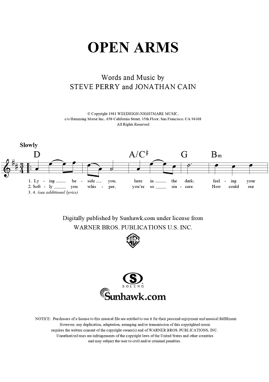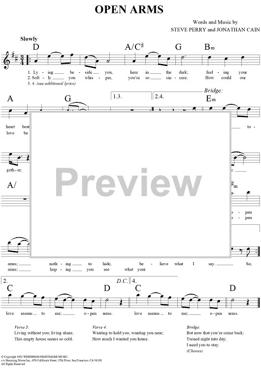 Digital Sheet Music for Open Arms by Steve Perry, Jonathan Cain, Journey scored for Lead Sheet; id:206981