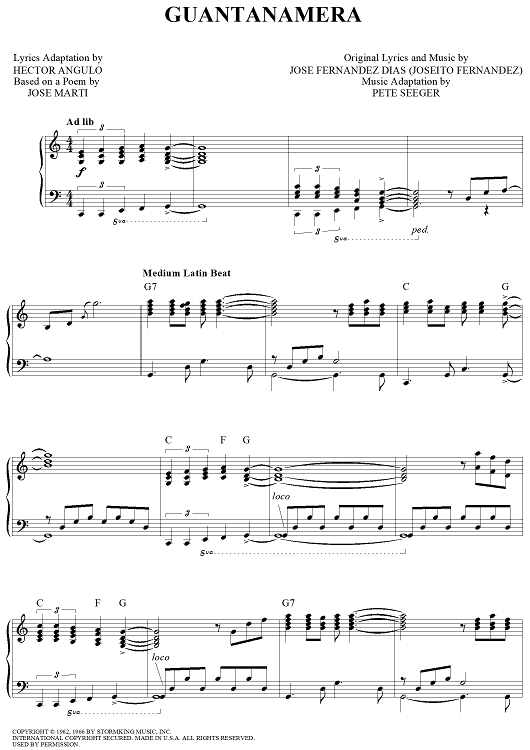 Digital Sheet Music for Guantanamera by Peter Seeger, Jose Fernandez Dias, Jose Marti, Richard Clayderman, Hector Angulo scored for Piano Solo; id:443688