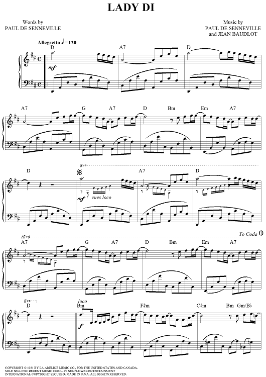 Digital Sheet Music for Lady Di by Richard Clayderman, Paul de Senneville, Jean Baudlot scored for Piano Solo; id:444789