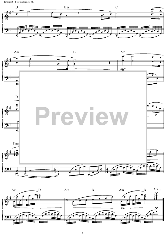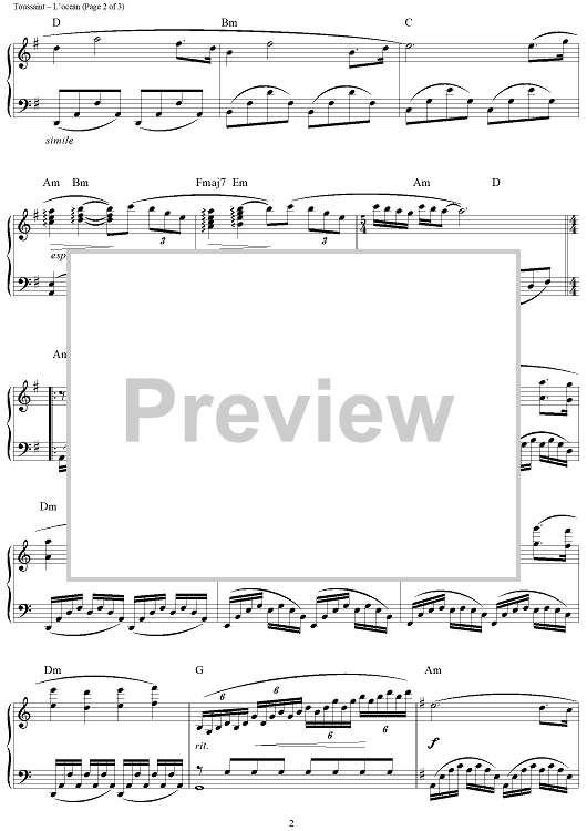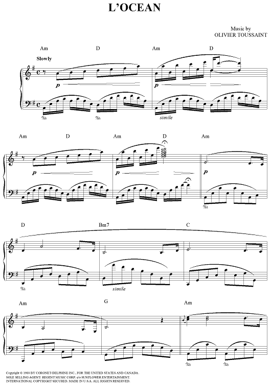 Digital Sheet Music for L'Ocean by Richard Clayderman, Olivier Toussaint scored for Piano Solo; id:444010