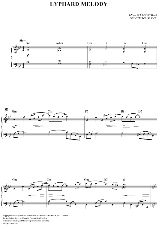 Digital Sheet Music for Lyphard Melody by Richard Clayderman, Paul de Senneville, Olivier Toussant scored for Piano Solo; id:463003