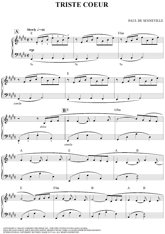 "Triste Coeur" Sheet Music by Richard Clayderman