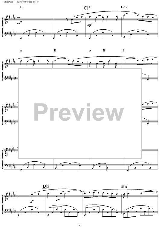 Digital Sheet Music for Triste Coeur by Richard Clayderman, Paul de Senneville scored for Piano Solo; id:444014