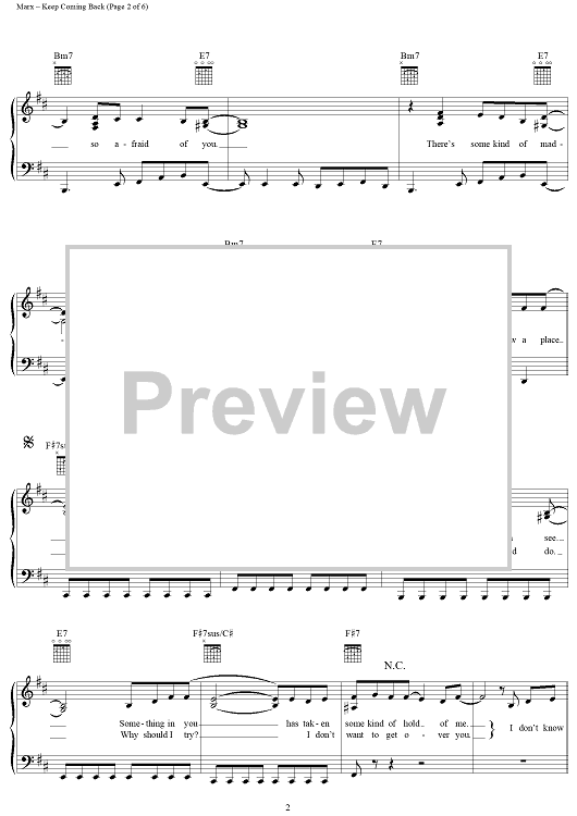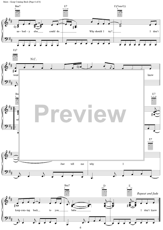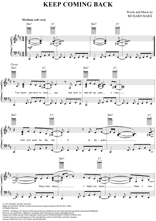 Digital Sheet Music for Keep Coming Back by Richard Marx scored for Piano/Vocal/Chords; id:251368