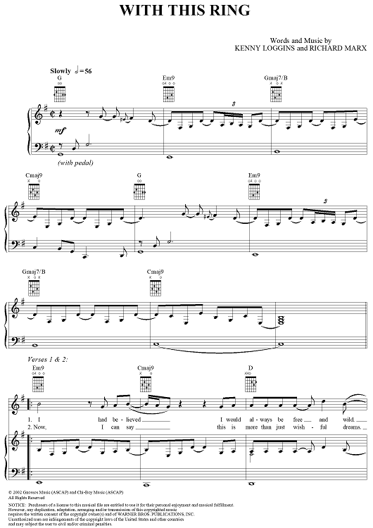Digital Sheet Music for With This Ring by Richard Marx, Kenny Loggins scored for Piano/Vocal/Chords; id:303095