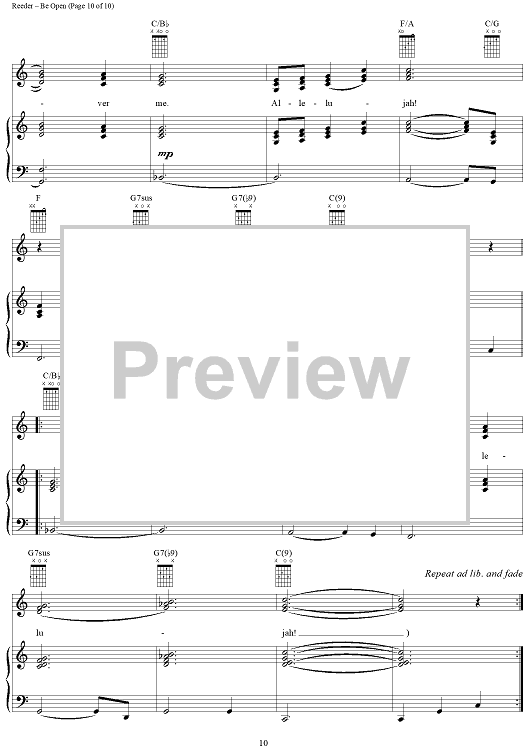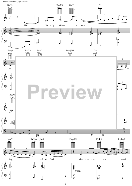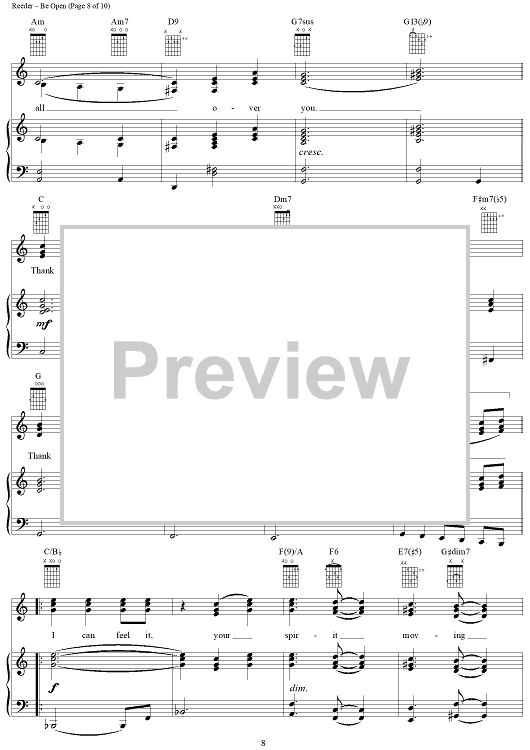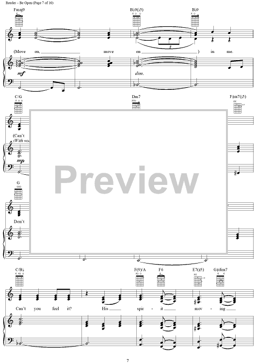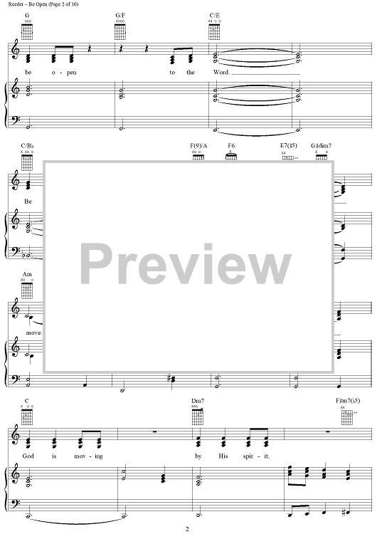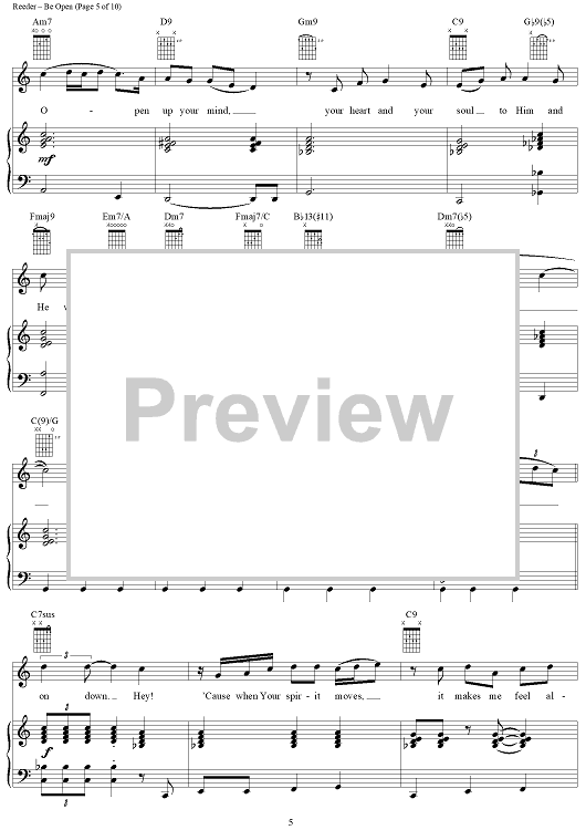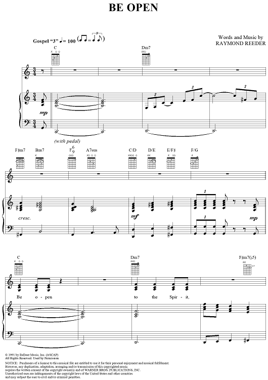 Digital Sheet Music for Be Open by Vision, Raymond Reeder, Richard Smallwood scored for Piano/Vocal/Chords; id:176599