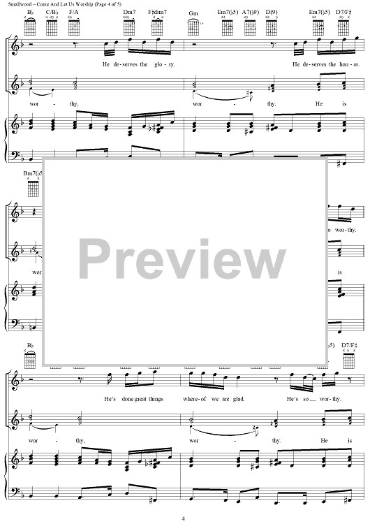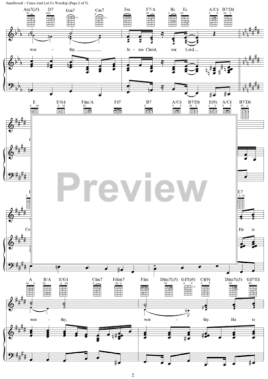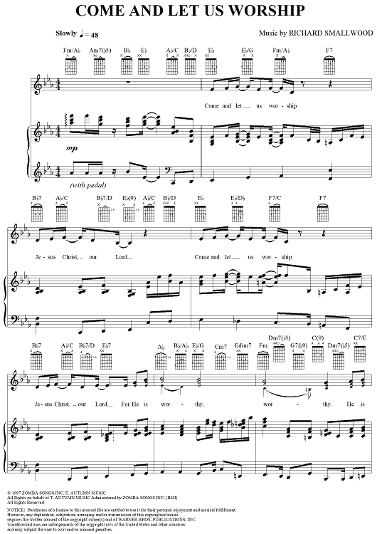 Digital Sheet Music for Come And Let Us Worship by Richard Smallwood scored for Piano/Vocal/Chords; id:258282