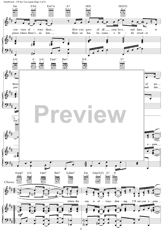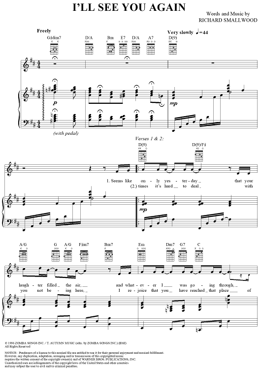 Digital Sheet Music for I'll See You Again by Richard Smallwood scored for Piano/Vocal/Chords; id:310075