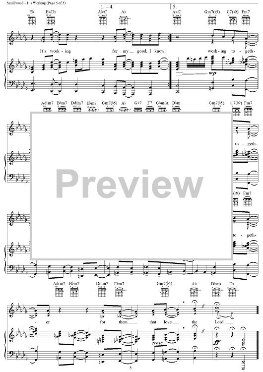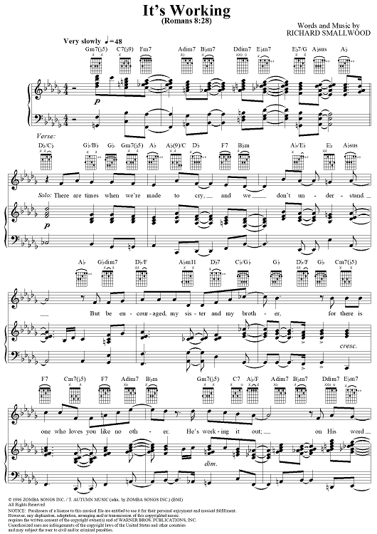 Digital Sheet Music for It's Working by Richard Smallwood scored for Piano/Vocal/Chords; id:310074