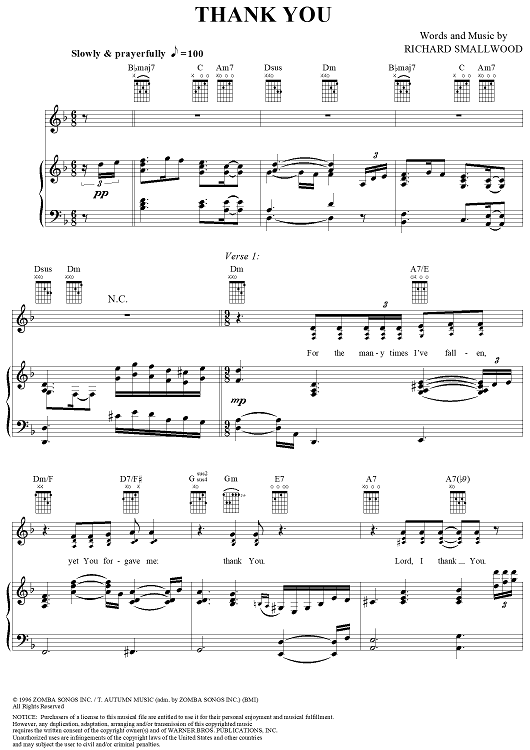 Digital Sheet Music for Thank You by Richard Smallwood scored for Piano/Vocal/Chords; id:310073
