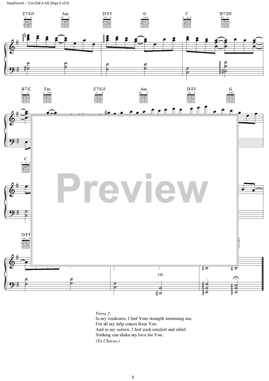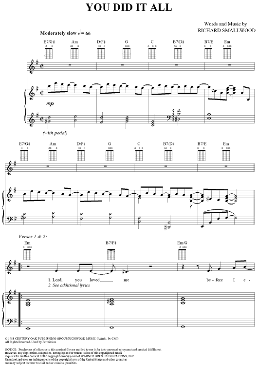 Digital Sheet Music for You Did it All by Vision, Richard Smallwood scored for Piano/Vocal/Chords; id:258734