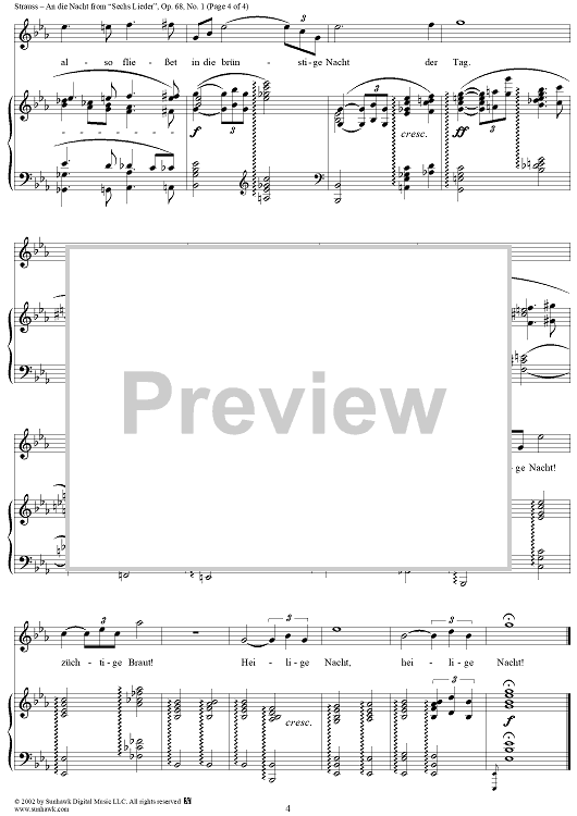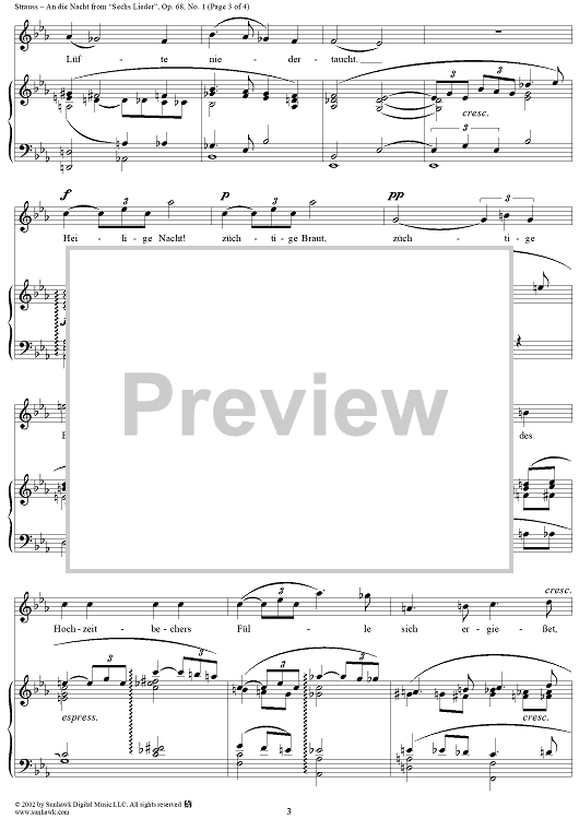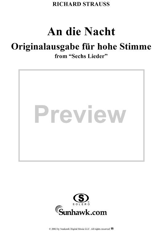 Digital Sheet Music for 6 Lieder, Opus 68, No. 1, An die Nacht (Clemens Brantano), by Richard Strauss scored for Voice/Piano; id:259522