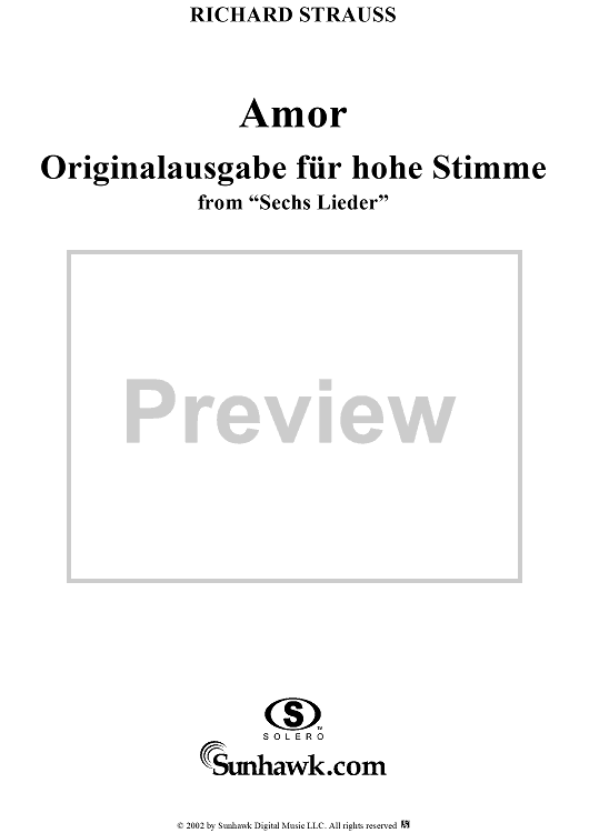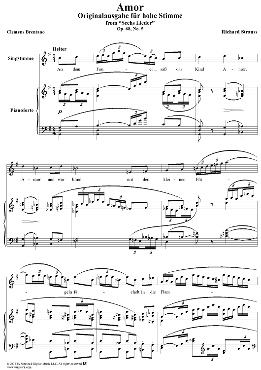 Digital Sheet Music for 6 Lieder, Opus 68, No. 5, Amor (Clemens Brentano) by Richard Strauss scored for Voice/Piano; id:259240