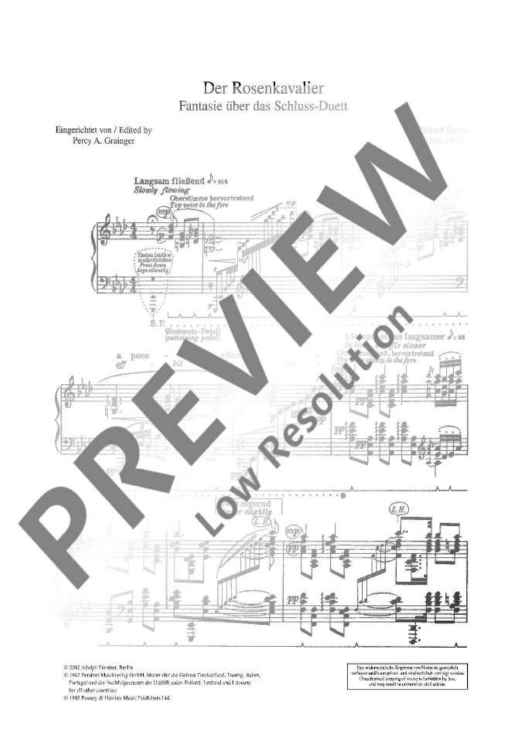 Die "Rosenkavalier"-Fantasie über das berühmte Schluss-Duett der Oper stammt aus der Feder des 1882 in Melbourne geborenen Percy Aldridge Grainger. 1895 kam Grainger als "Wunderkind" nach Europa, gastierte häufig in London, wo sich sein Ruhm als virtuoser Konzertpianist und Komponist rasch verbreitete. Die hier vorliegende "Rosenkavalier"-Transkription ist lebendiger Beweis für Graingers wichtigste Tugend: niemals langweilig zu sein.