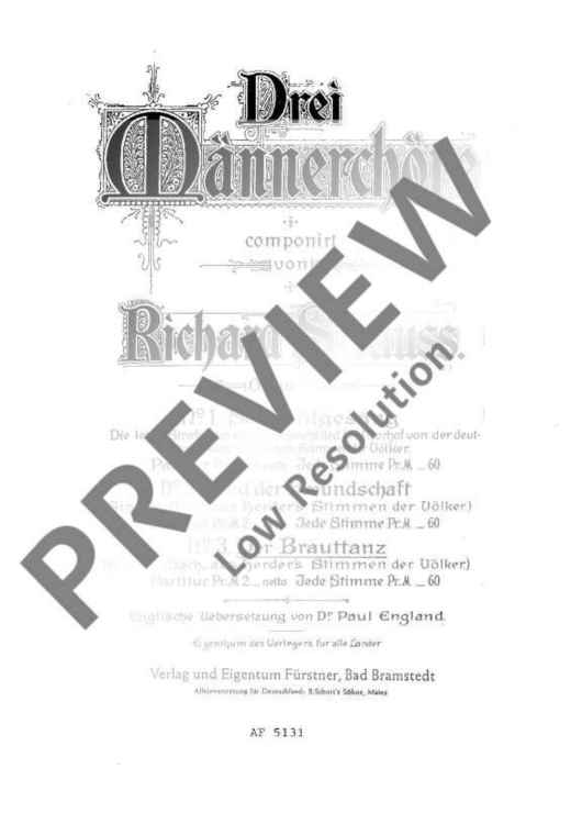 Digital Sheet Music for Drei Männerchöre - Choral Score by Richard Strauss scored for Men's Choir (ttbb); id:493969