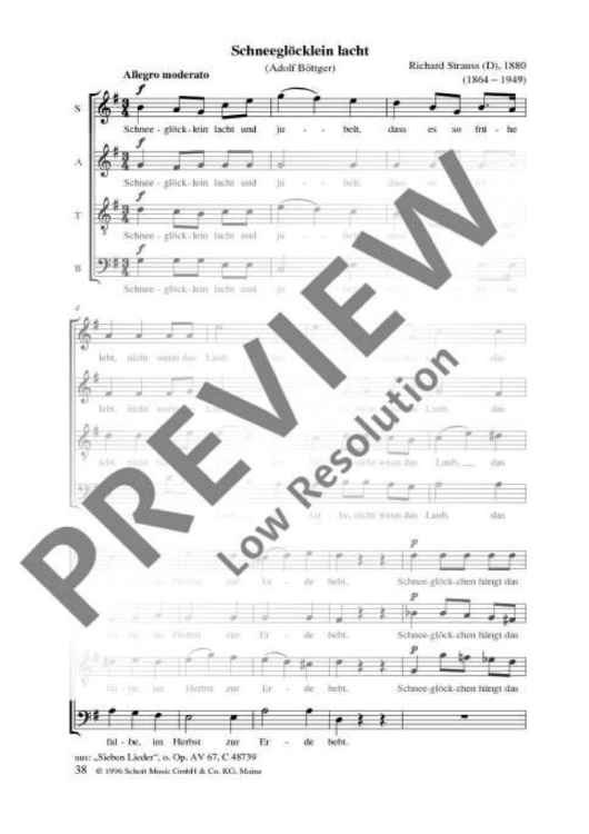 Digital Sheet Music for Schneeglöcklein lacht by Richard Strauss scored for Mixed Choir (satb); id:493919