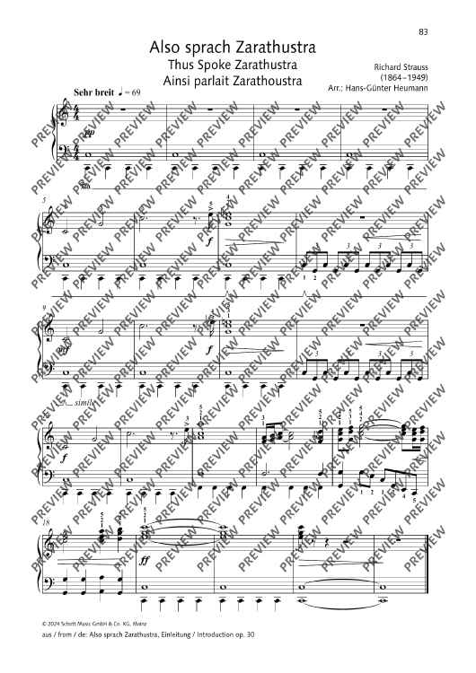 Digital Sheet Music for Thus Spoke Zarathustra by Richard Strauss, Hans-Guenter Heumann scored for Piano; id:504179