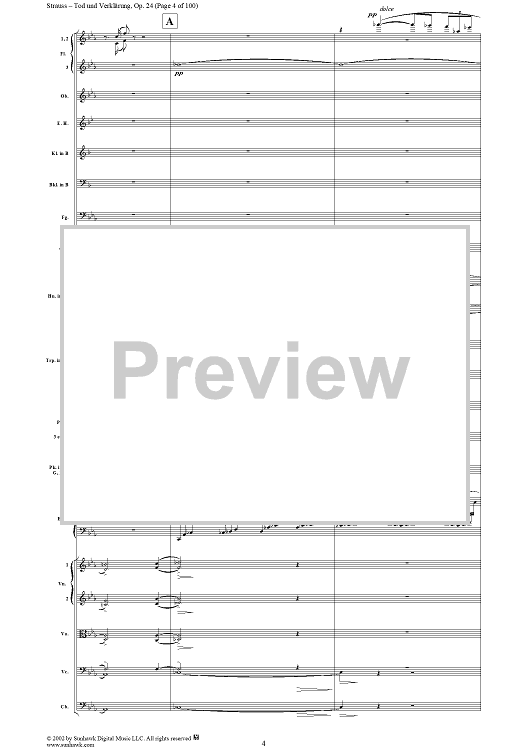 Digital Sheet Music for Tod und Verklaerung (Death and Tranifiguration), Op. 24 by Richard Strauss scored for Orchestra; id:256076