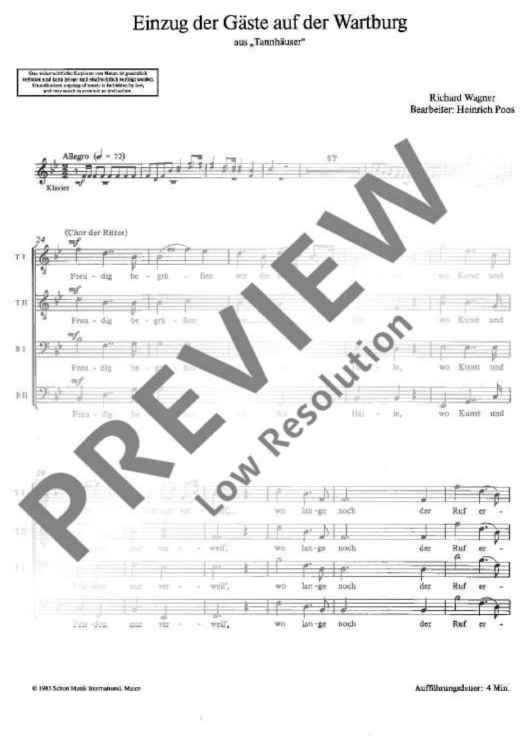 Digital Sheet Music for Einzug der Gäste auf der Wartburg - Choral Score by Richard Wagner, Heinrich Poos scored for Mixed Choir (satb) And Piano (4 Hands) Or Orchestra; id:479502