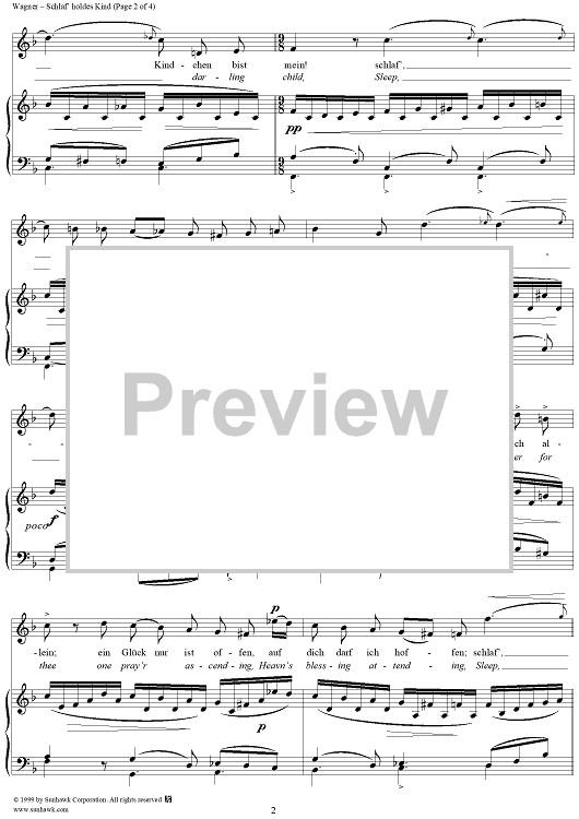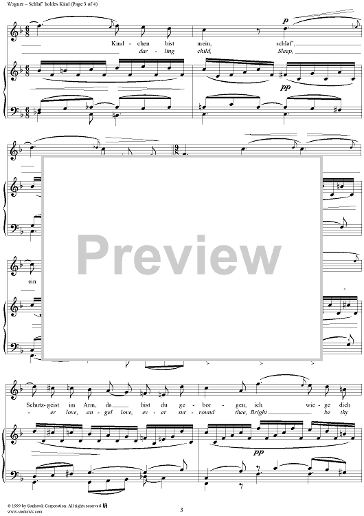 Digital Sheet Music for Schlaf' holdes Kind (Sleep my dear child) by Richard Wagner, Jacques Ahrem scored for Voice/Piano; id:264361
