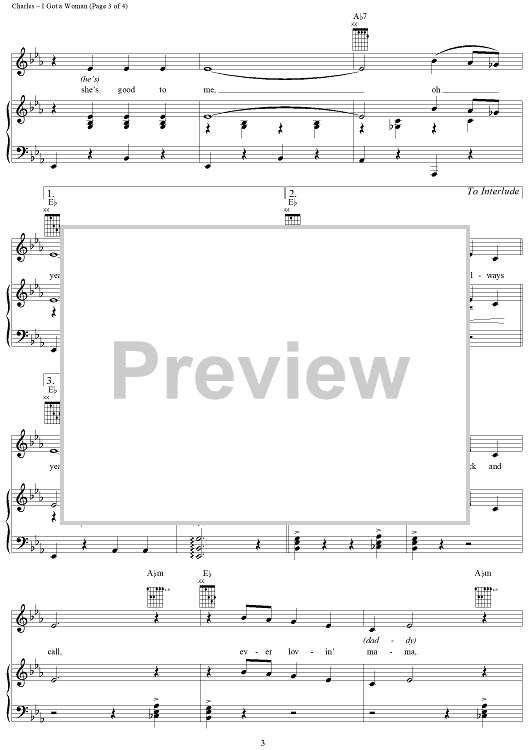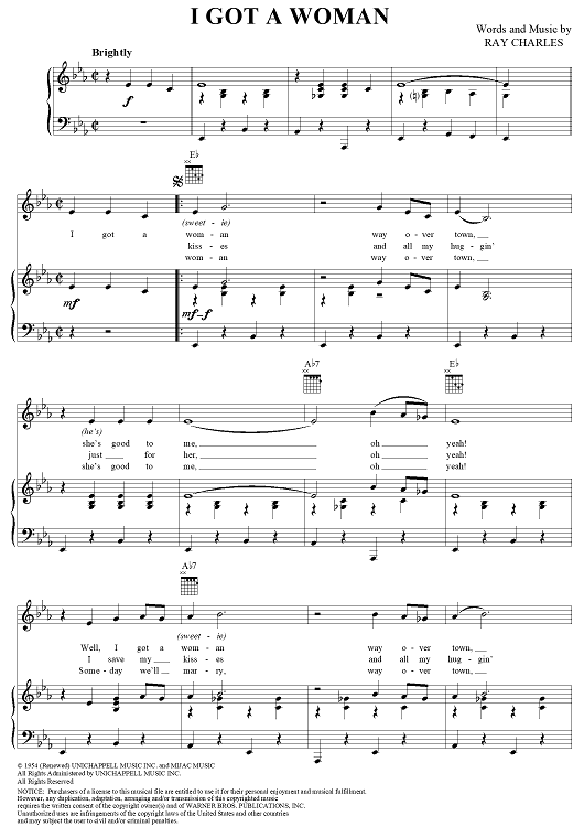 Digital Sheet Music for I Got a Woman by Ricky Nelson, Ray Charles, Jimmy McGriff scored for Piano/Vocal/Chords; id:286701