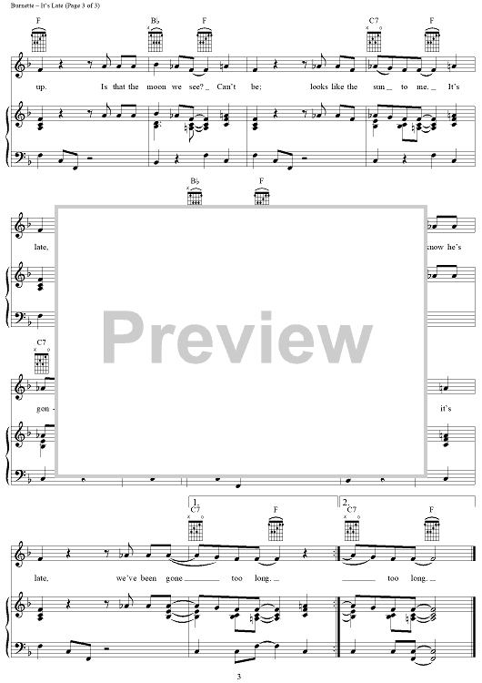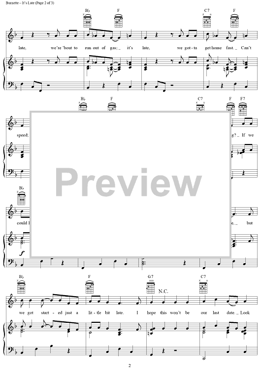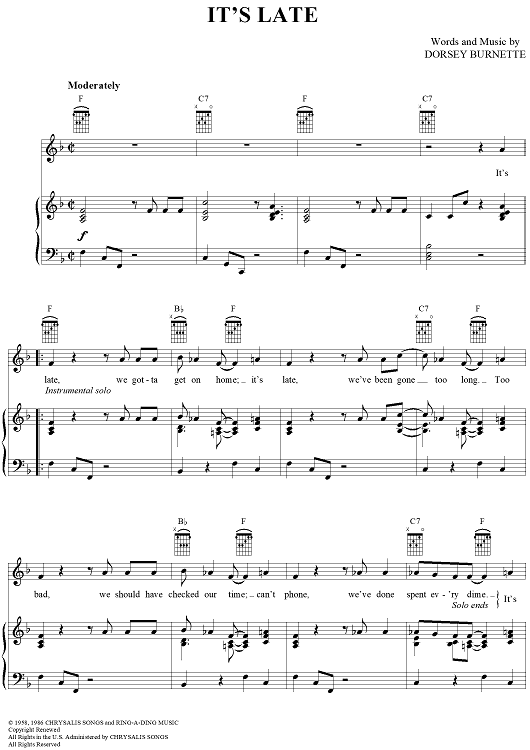 Digital Sheet Music for It's Late by Ricky Nelson, Dorsey Burnette scored for Piano/Vocal/Chords; id:396121
