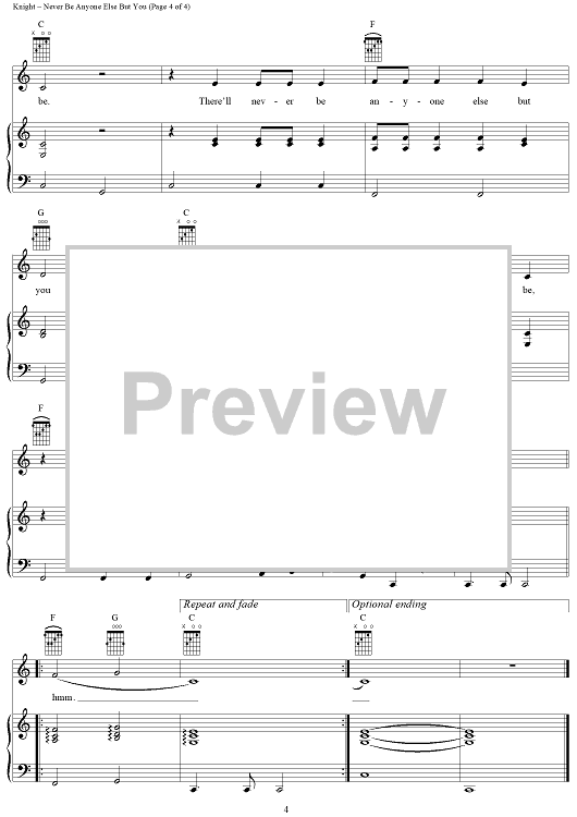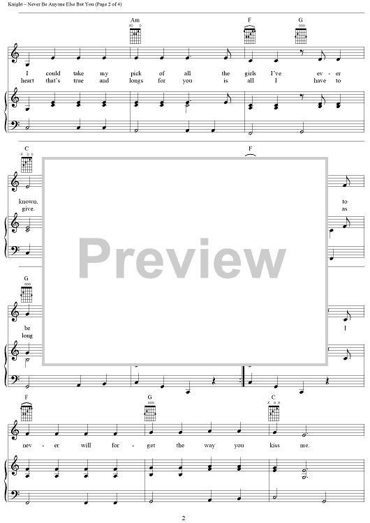 Digital Sheet Music for Never Be Anyone Else But You by Ricky Nelson, Baker Knight scored for Piano/Vocal/Chords; id:381761