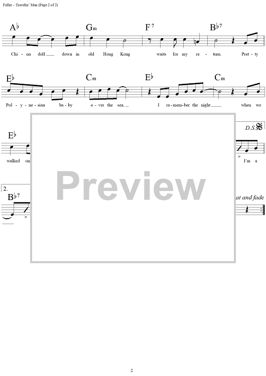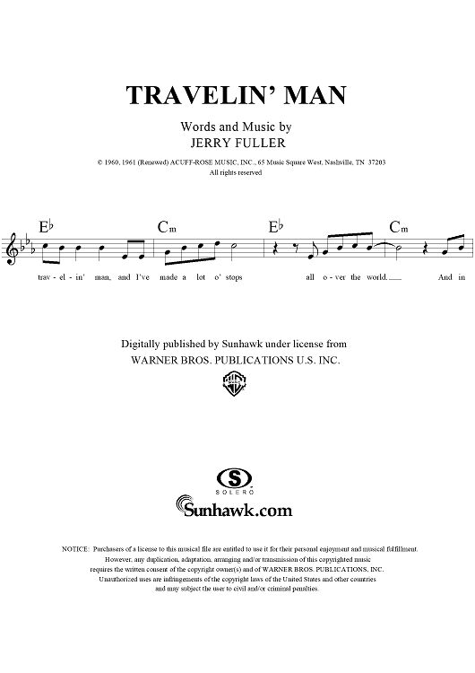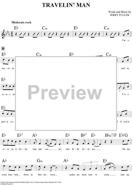 Digital Sheet Music for Travelin' Man by Ricky Nelson, Jerry Fuller scored for Lead Sheet; id:113073