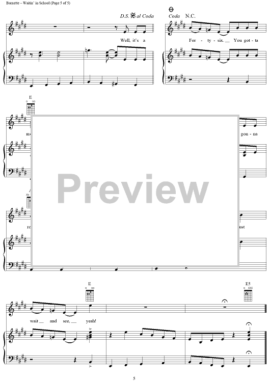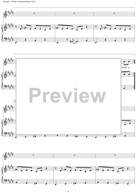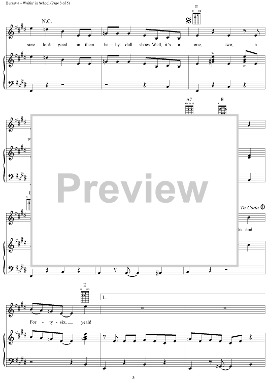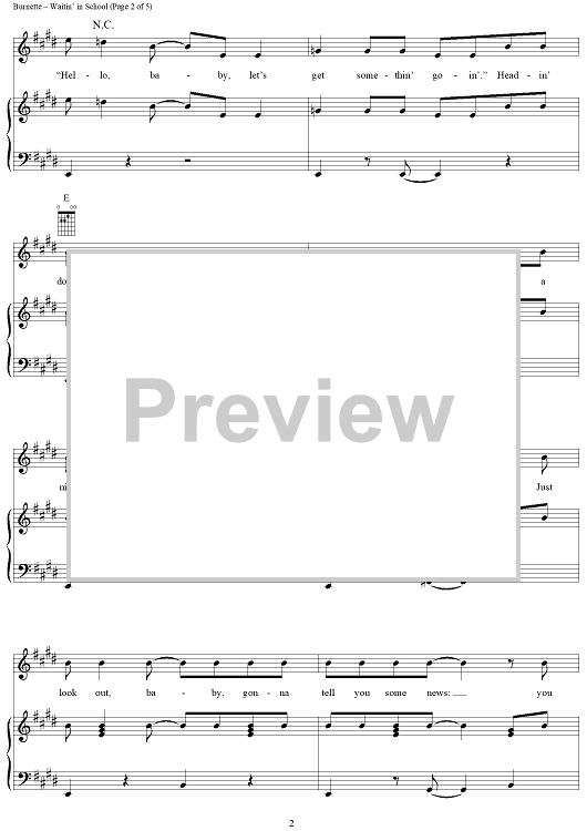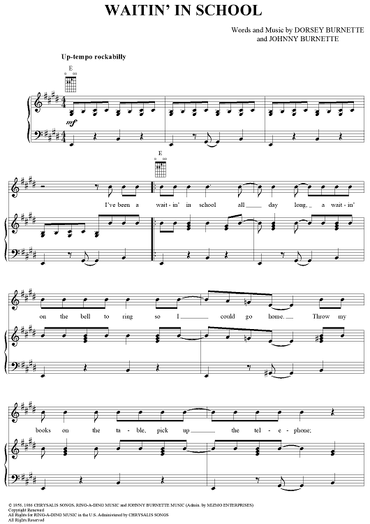 Digital Sheet Music for Waitin' in School by Ricky Nelson, Johnny Burnette, Dorsey Burnette scored for Piano/Vocal/Chords; id:396120