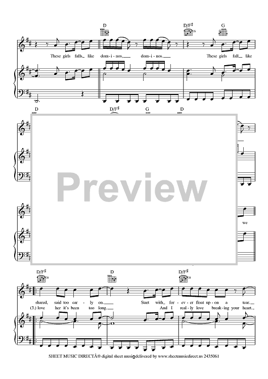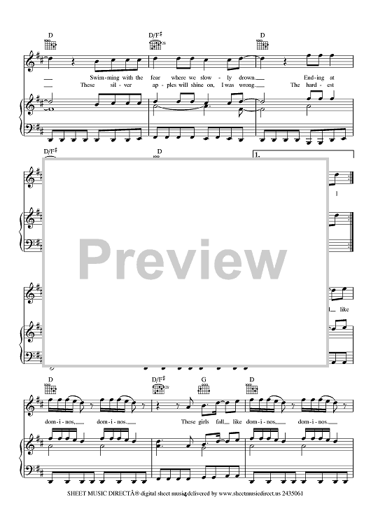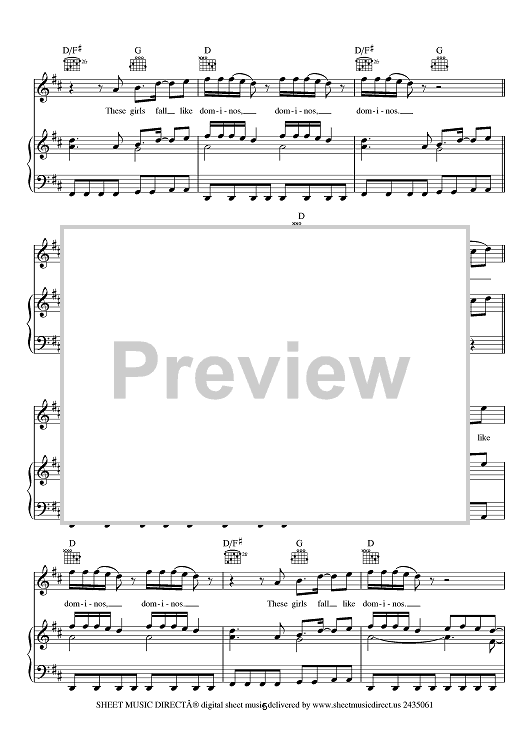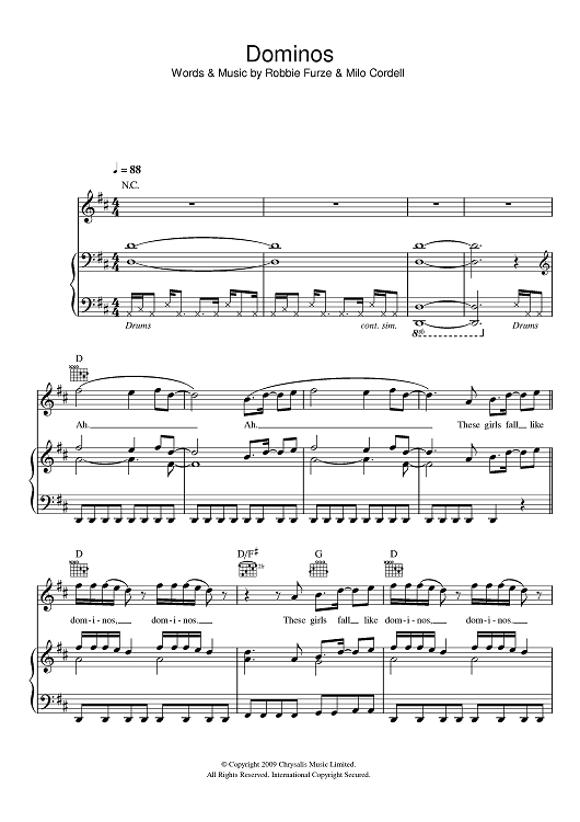 Digital Sheet Music for Dominos by Robbie Furze, Milo Cordell, The Big Pink scored for Piano/Vocal/Chords; id:410500