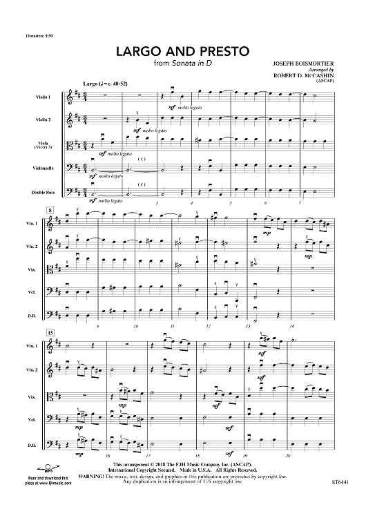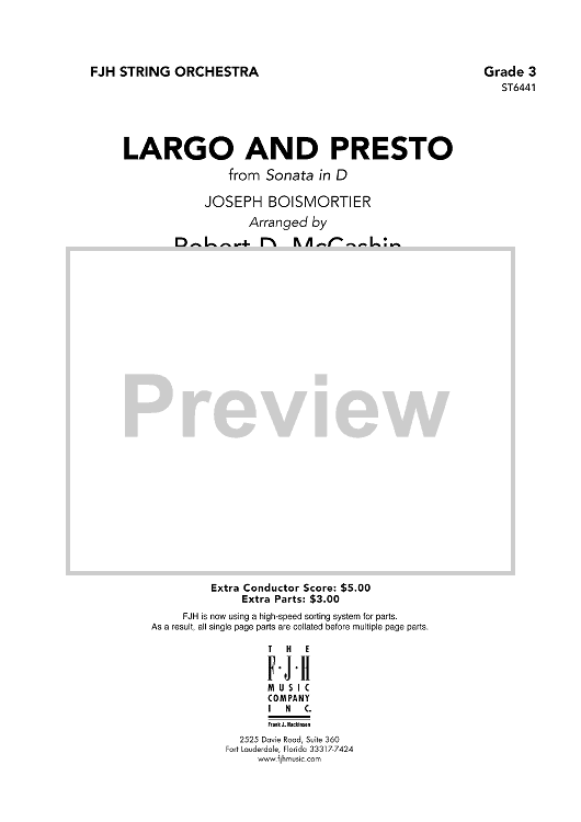 "Largo and Presto from Sonata in D - Score" Sheet Music by Joseph Bodin de Boismortier
