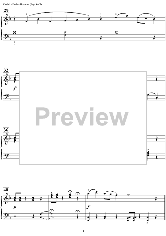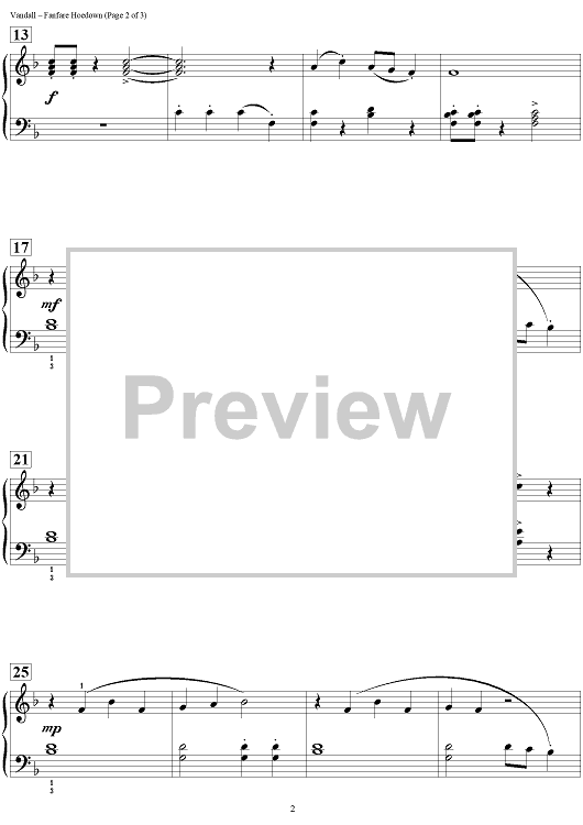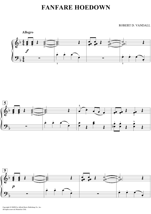 Digital Sheet Music for Fanfare Hoedown by Robert D. Vandall scored for Piano; id:464410