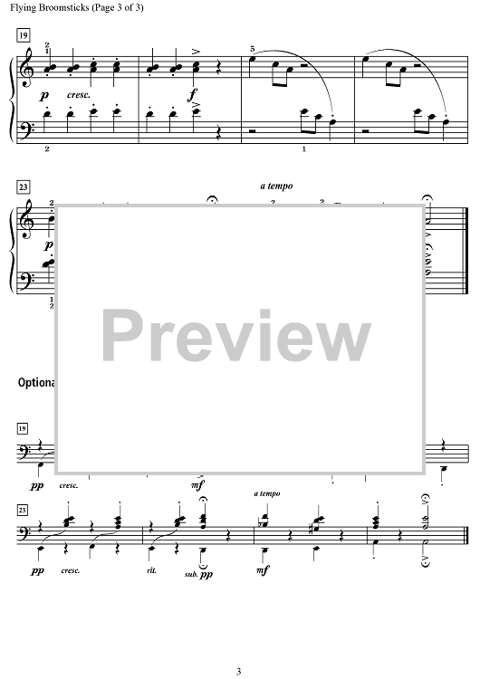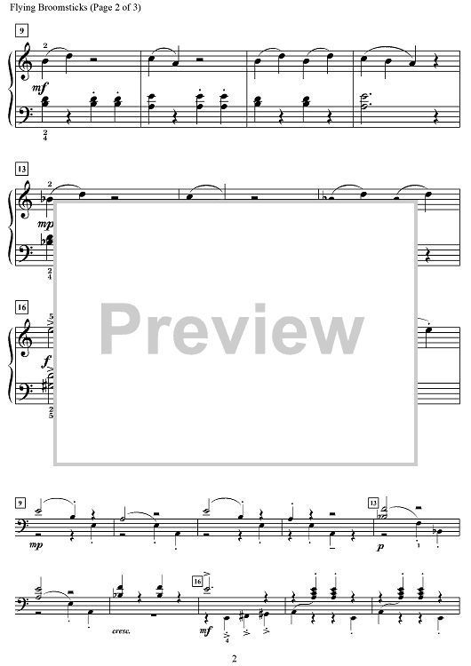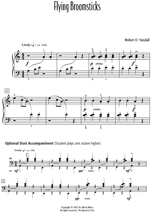 With the cool Halloween wind blowing through their hair, students can experience the thrill of soaring through the sky on their witchy broomsticks in this Late Elementary piece in the key of A minor. With a quick tempo, a meter of 4/4, and quickly changing dynamics, this driving piece perfectly simulates the rush of daring flight, while providing a challenge for students to keep up and not fall off their broom! The optional duet accompaniment offers a firm ground below the soaring students as they take off on a night of adventure!