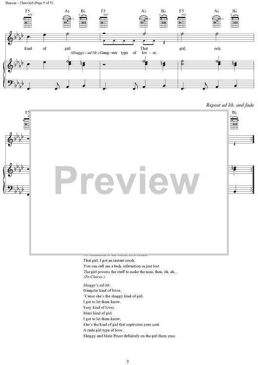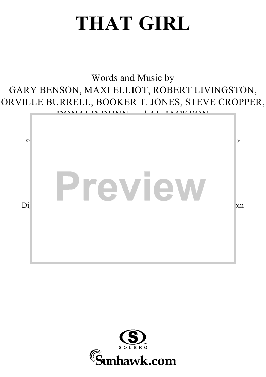 Digital Sheet Music for That Girl by Booker T. Jones, Steve Cropper, Max Elliot, Maxi Priest, Al Jackson Jr, Donald Dunn, Shaggy, Gary Benson, Robert Livingston scored for Piano/Vocal/Chords; id:289509