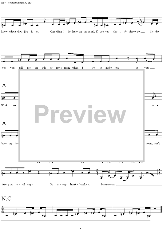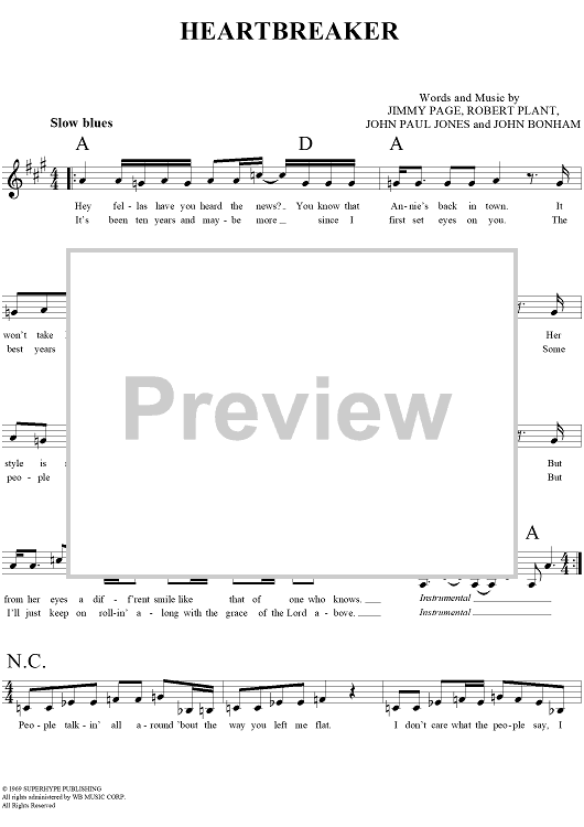 Digital Sheet Music for Heartbreaker by Jimmy Page, John Paul Jones, John Bonham, Led Zeppelin, Robert Plant scored for Lead Sheet; id:119921