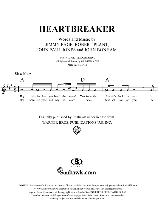 "Heartbreaker" Sheet Music by Led Zeppelin