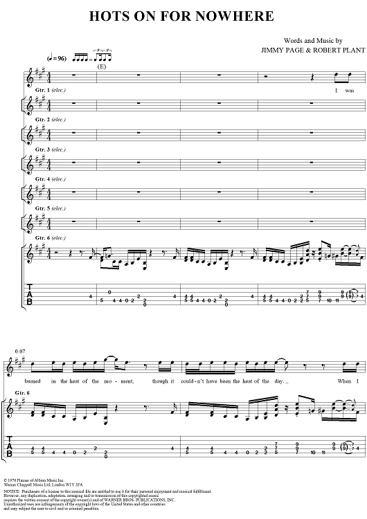 "Hots On For Nowhere" Sheet Music by Led Zeppelin