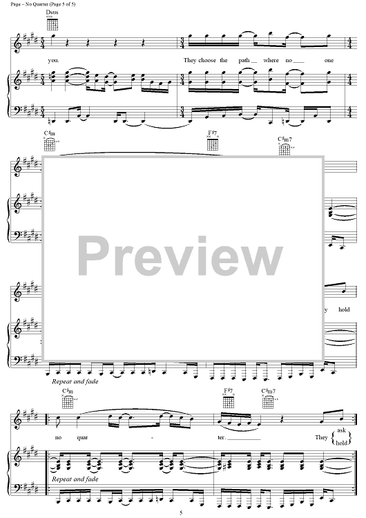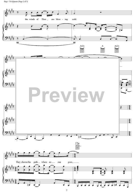 Digital Sheet Music for No Quarter by Jimmy Page, John Bonham, Led Zeppelin, Robert Plant scored for Piano/Vocal/Chords; id:253778