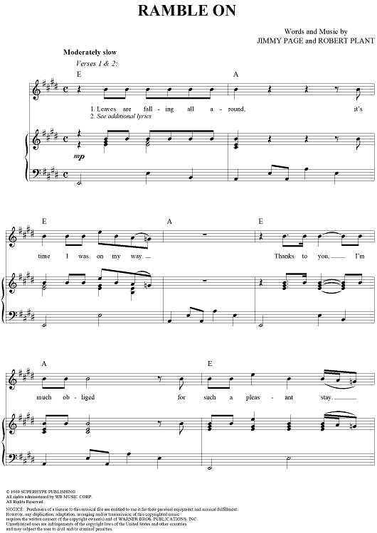 "Ramble On" Sheet Music by Led Zeppelin