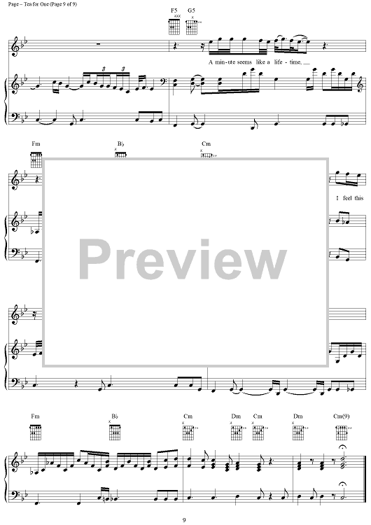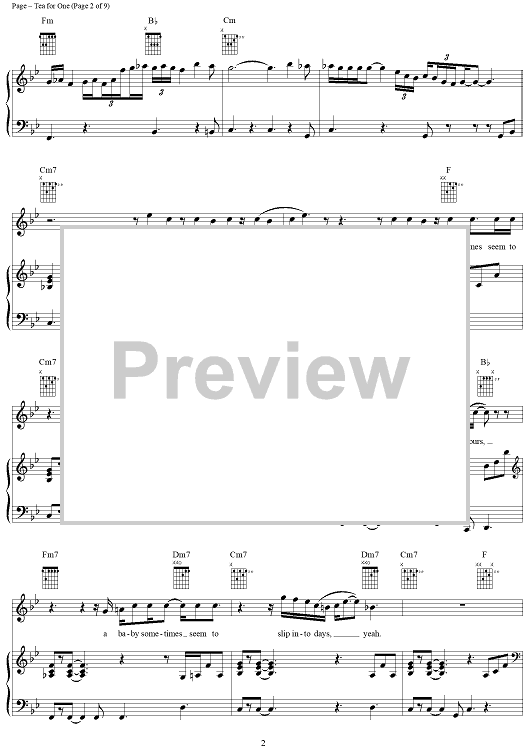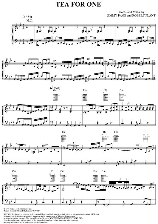 Digital Sheet Music for Tea For One by Jimmy Page, Led Zeppelin, Robert Plant scored for Piano/Vocal/Chords; id:254290