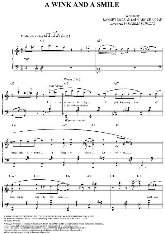 "A Wink and a Smile" Sheet Music by Marc Shaiman