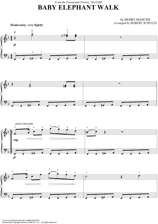 "Baby Elephant Walk" Sheet Music by Henry Mancini