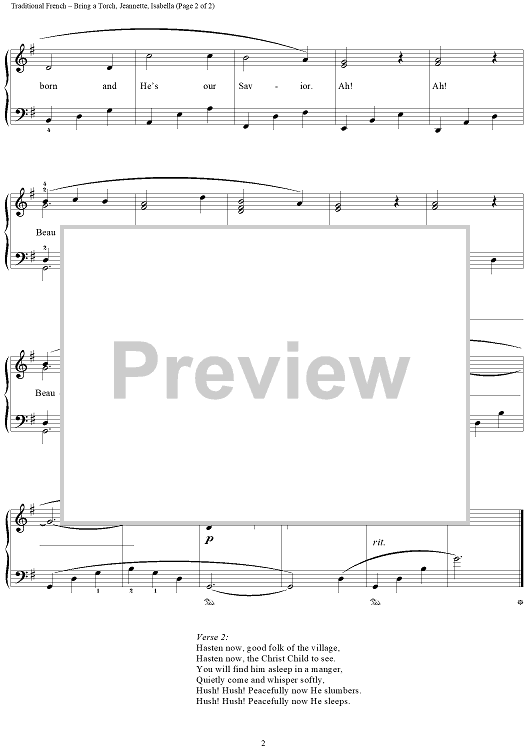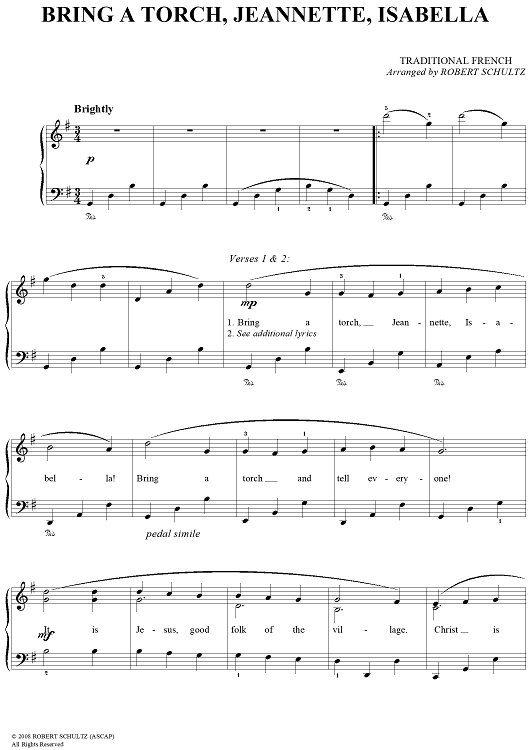 "Bring a Torch, Jeannette, Isabella" Sheet Music by Traditional